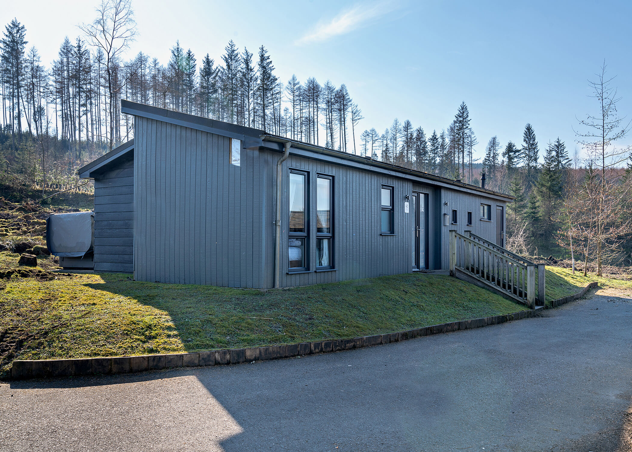 The Ash Premier Spa lodge at Kielder Waterside sleeps six, with two double bedrooms, one with en-suite, and one twin bedroom.